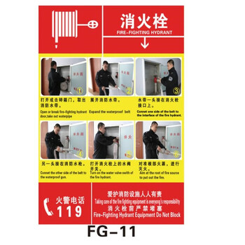 亿箬 (消火栓40*60cm)室内PVC灭火器使用方法安全标识牌 消防栓箱提示标识贴纸FG-11