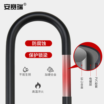 安赛瑞 U型锁玻璃门锁 可调节商铺电动车4位密码加长挂锁 黑色 430829
