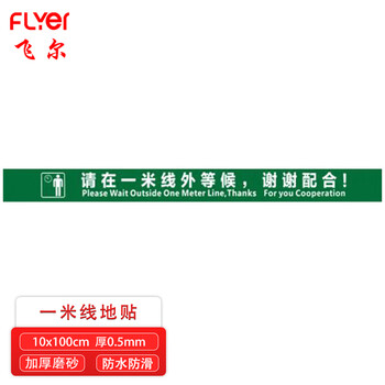 飞尔(FLYER)一米线地贴 银行车站一米警戒线 地面加厚磨砂耐磨防水防滑贴 线外等提示地贴 绿色 一条