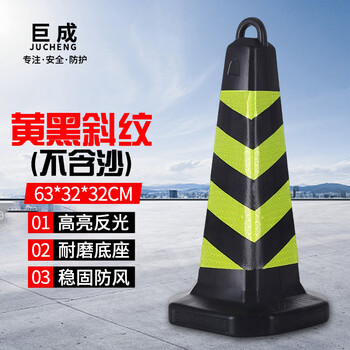 巨成 反光路锥塑料方锥桶 路障雪糕桶锥形桶交通设施 带提环(不含沙)黄黑斜纹无字 63cm高