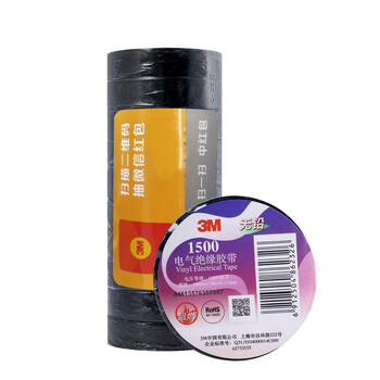 3M 1500#黑色 电工胶带 电气绝缘胶带 PVC电工胶布 无铅600V 防潮耐酸碱(18mm*10m*0.13mm)10卷装