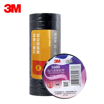 3M 1600# 黑色 电工胶带 电气绝缘胶带 无铅耐磨防潮耐酸碱18mm*20m 10卷