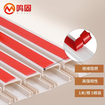 鸣固 PVC线槽 带胶明装方形阻燃白色走线槽电缆电线保护套管 12*7mm 1米/根 5根装背胶颜色红蓝随机发