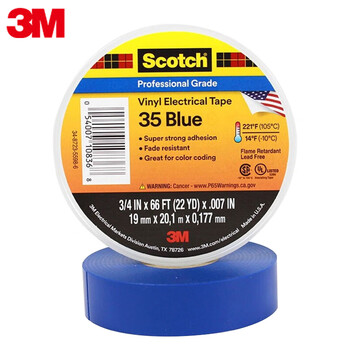 3M Scotch 35# 优质PVC相色绝缘胶带 进口电工胶带 耐高温耐候阻燃 蓝色19mm*20.1m*0.18mm