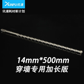 讯浦 方柄14*500mm 电锤钻头 冲击钻头 四坑式 YG8C钨钢12号 混凝土穿墙钻头 1根装XT-CF14-500