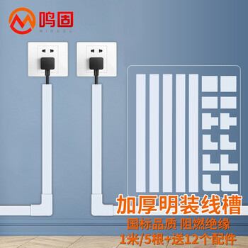 鸣固 PVC线槽 明装明线走线槽网线电线槽方形槽自带背胶30*15加厚款 5米套装 下单送12个配件