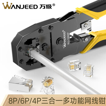 万级(WANJEED)网线钳子三用多功能剪剥压网线钳 8P6P4P超五类六类水晶头压接钳 电脑网络工具 WJ-1688F