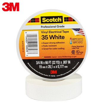 3M Scotch 35# 优质PVC相色绝缘胶带 进口电工胶带 耐高温耐候阻燃 白色19mm*20.1m*0.18mm