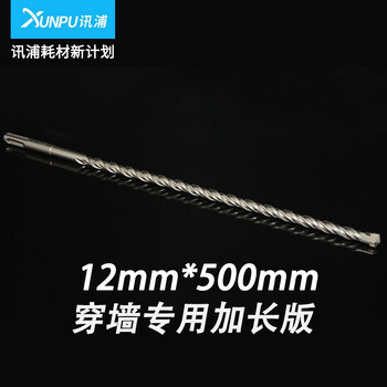 讯浦 圆柄12*500mm 电锤钻头 冲击钻头 圆柄四坑式 YG8C钨钢 混凝土穿墙钻头 1根装XT-CY12-500