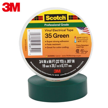 3M Scotch 35# 优质PVC相色绝缘胶带 进口电工胶带 耐高温耐候阻燃 绿色19mm*20.1m*0.18mm