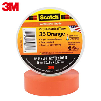 3M Scotch 35# 优质PVC相色绝缘胶带 进口电工胶带 耐高温耐候阻燃 橙色19mm*20.1m*0.18mm