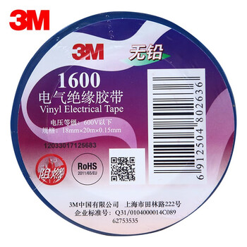3M 1600# 蓝色 电工胶带 电气绝缘胶带 PVC电工胶布 无铅耐磨防潮耐酸碱18mm*20m