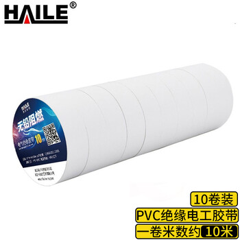 海乐(HAILE)电工绝缘胶带耐磨防潮耐酸碱 JD-05 白色 10卷装