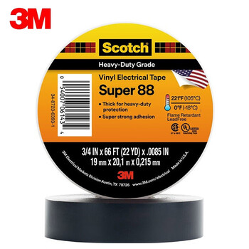 3M Scotch Super88 特优级全天候PVC绝缘胶带 电气电工胶布 耐磨防腐耐酸碱【19mm*20.1m*0.216mm】