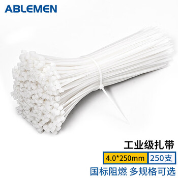 ABLEMEN 自锁式尼龙扎带大号 理线带 扎线 4.0*250mm 白色 250支装