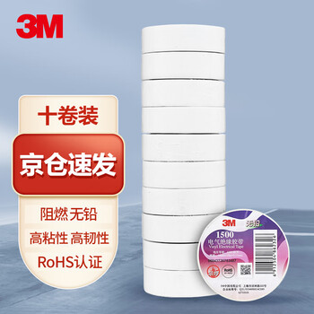 3M 1500# 电工胶带 电气绝缘胶带 PVC电工胶布 无铅600V 防潮耐酸碱 白18mm*10m*0.13mm 10卷
