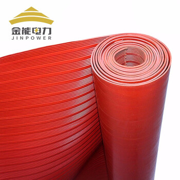 金能电力 高压绝缘垫橡胶垫配电房绝缘地毯5mm厚 配电室绝缘胶垫10kv红色10m/卷 常规条纹防滑型
