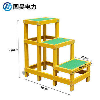 国昊电力 玻璃钢三层绝缘凳 120*30*50cm 电工移动式绝缘台高低凳梯凳
