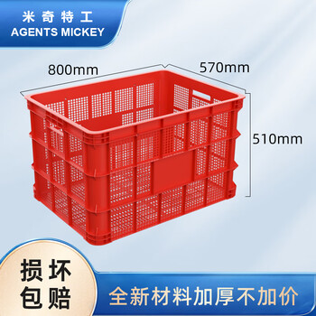 米奇特工 大号塑料筐 长方形周转塑料框 运输筐服装厂分类仓储物流胶框 755筐800*570*510 红色