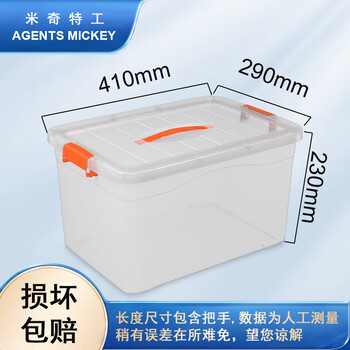 米奇特工(Agents mickey)收纳箱塑料周转箱储物整理箱子 透明款大号27L:41*29*23cm