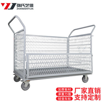 张氏艺佳仓库推拉网格手推车折叠搬运车物料四轮拉货车灰色网格款1000*600*850