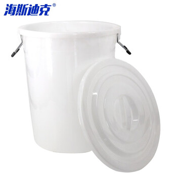 海斯迪克 HKCC17 塑料大水桶 圆形收纳桶 酒店厨房储水桶 白色50L带盖