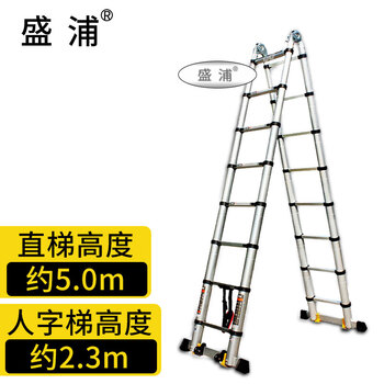 盛浦 竹节梯子 铝合金人字伸缩升降梯 两用可直梯可人字 人字梯高2.3米 直梯高5米 S-TZ050L