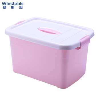 稳斯坦 W305 彩色带提手收纳箱 周转箱 带滑轮塑料储物箱 杂物工具带盖整理箱 粉色8L