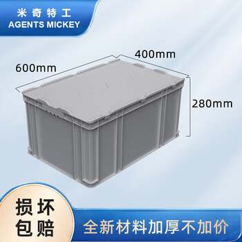 米奇特工 加厚塑料带盖运输物流箱 汽车配储物箱 周转箱 收纳工具箱 零件箱 600*400*280有盖 灰色