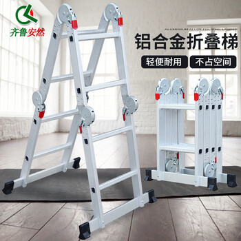 齐鲁安然 伸缩梯子 多功能加厚 铝合金折叠梯 人字梯 工程楼梯 厚款4折2步2.6米 (2.0mm)