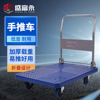 盛富永 平板车小推车手推车货车搬运车小拖车手拉车 90*60蓝色带刹车大号