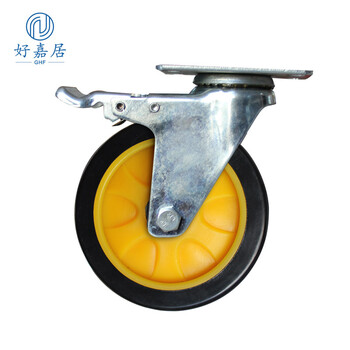好嘉居车轮静音脚轮脚轮推车轮子平板车轮车轱辘耐磨拖车轮耐磨PVC4寸刹车万向轮