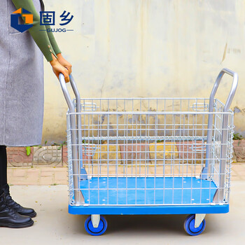 固乡 拣货车 搬运车 手推车笼车拉货车 护栏平板车 围栏框仓库配货车 低噪音【大包围60x90x90cm】承重400kg