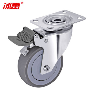 冰禹 BY-2394 不锈钢脚轮 轻音工业脚轮 不锈钢推车轮子 5寸万向刹车