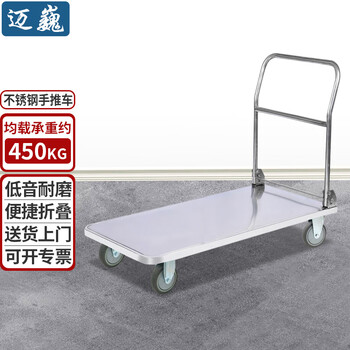 迈巍中型不锈钢平板车承重450KG手推车折叠手拉车拖车拉货车搬运车可定制ME251