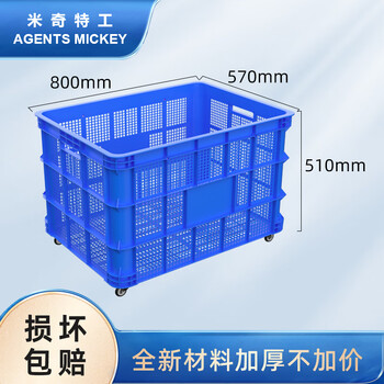 米奇特工 大号塑料筐 带轮子长方形周转塑料框 运输筐服装厂分类仓储物流胶框 755筐加4个黑轮子 蓝色