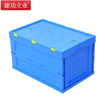 建功立业 折叠周转箱带盖 盖子可拆卸 外径600*400*340mm 带盖便捷式工厂物料箱 212012蓝色