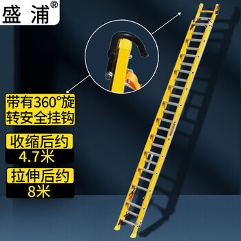 盛浦 绝缘伸缩直梯子 玻璃钢工程梯拉绳升降 电工梯加固耐用防滑8米 S-TS080J
