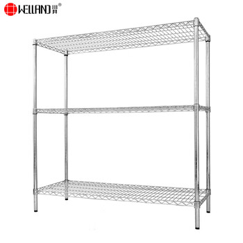 川井(WELLAND)网层货架 三层线网镀铬置物架工业级电镀线棒收纳储物架 单层承重250kg 60*35*120cm