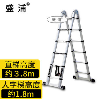 盛浦 竹节梯子 铝合金人字伸缩升降梯 两用可直梯可人字 人字梯高1.8米 直梯高3.8米 S-TZ038L