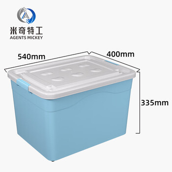 米奇特工 塑料收纳箱 纯色周转箱整理箱 特大号带轮65L:54*40*33.5cm(蓝色)