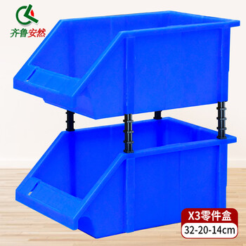 齐鲁安然 加厚组合式零件盒物料盒收纳盒工具盒螺丝盒五金盒分类盒库房仓库斜口 蓝色 X3