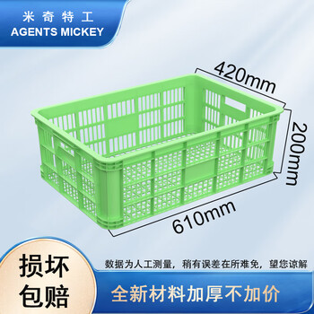 米奇特工 方形塑料筐 工业周转筐 服装周转箱 快递物流筐 绿色 610*420*200mm