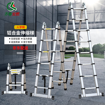 齐鲁安然 铝合金伸缩梯 人字梯 加厚折叠楼梯 多功能升降梯 工程梯子 双侧梯 2.8+2.8米