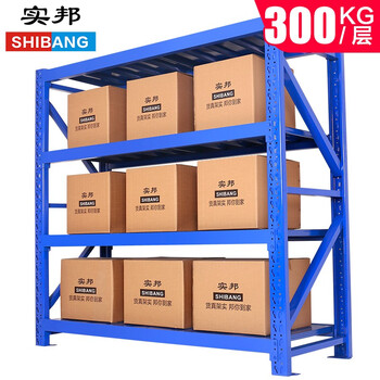 实邦货架置物架仓储货架展示架铁架仓库货架蓝色300kg主架长200*宽50*高200