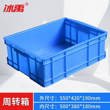 冰禹 BY-1189 蓝色加厚塑料周转箱 可带盖零件盒物流箱 550*420*190mm