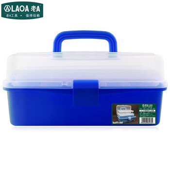 老A LAOA LA111905三层塑料收纳箱存储箱五金工具箱手提箱塑料箱深蓝12.5"