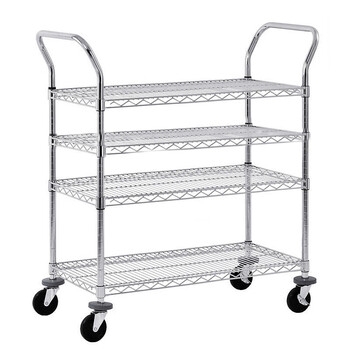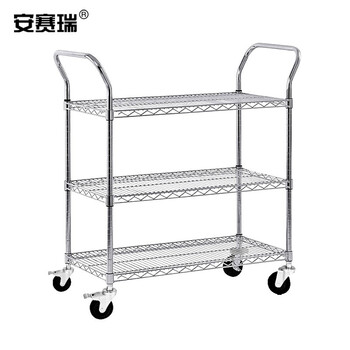 安赛瑞 手推车 镀铬线网可移动搬运工具车 电商物流车间物料周转车分拣货车120×45×103cm 三层 200393