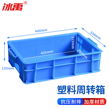 冰禹 BY-1188 蓝色加厚塑料周转箱 可带盖零件盒物流箱 440*330*120mm