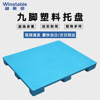 稳斯坦 WST141 实心塑料托盘 防潮栈板卡板仓库叉车托板平板九脚托盘 1.2*1米特厚